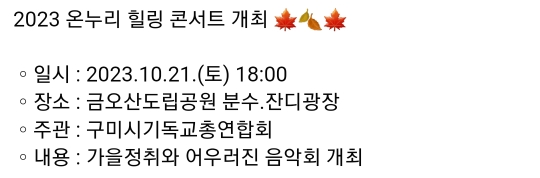 일시 : 2023.10.28(토) 오전11시~오후3시
