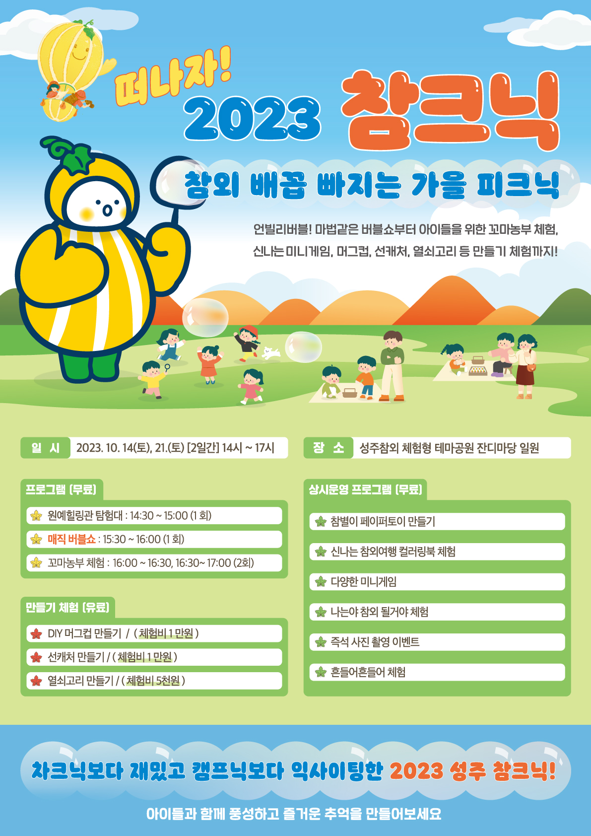 73. 성주 참외 배꼽빠지는 가을 피크닉(10.14/21)유.무료