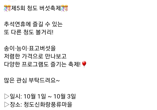 2. 청도 운문산 송이.능이.표고버섯 축제(10.1~10.3)