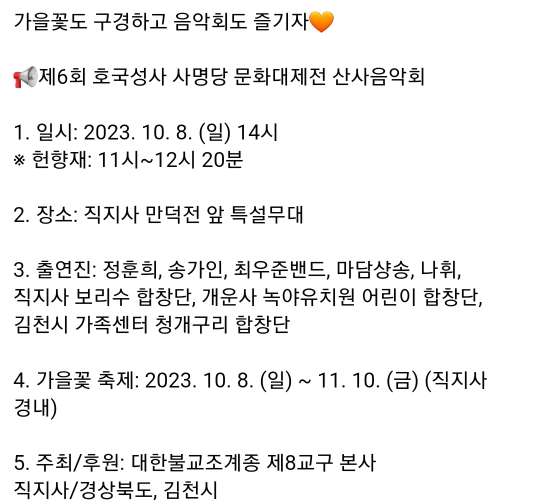 44. 김천 직지사 산사음악회(10.8)