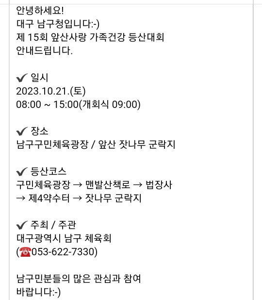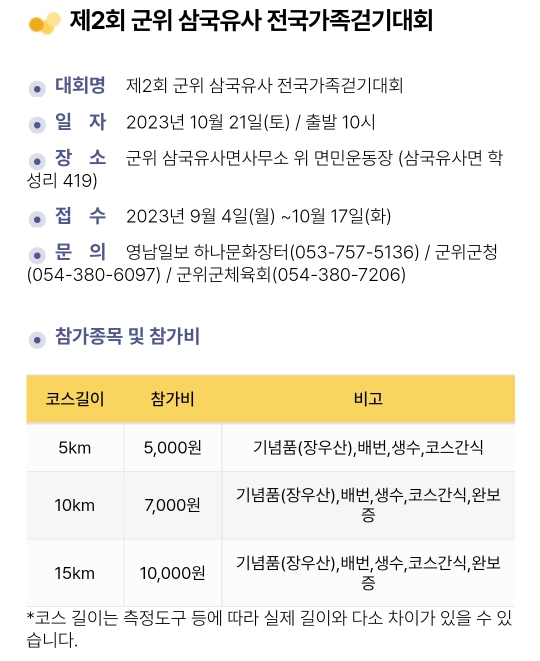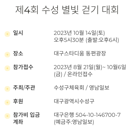 70. 대구 수성구 수성 별빛 걷기대회(10.14)참가비
