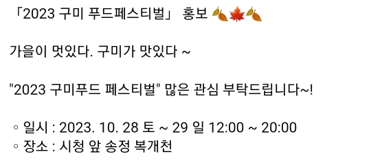일시 : 2023.10.28(토) ~ 10.29(일) 12~20시