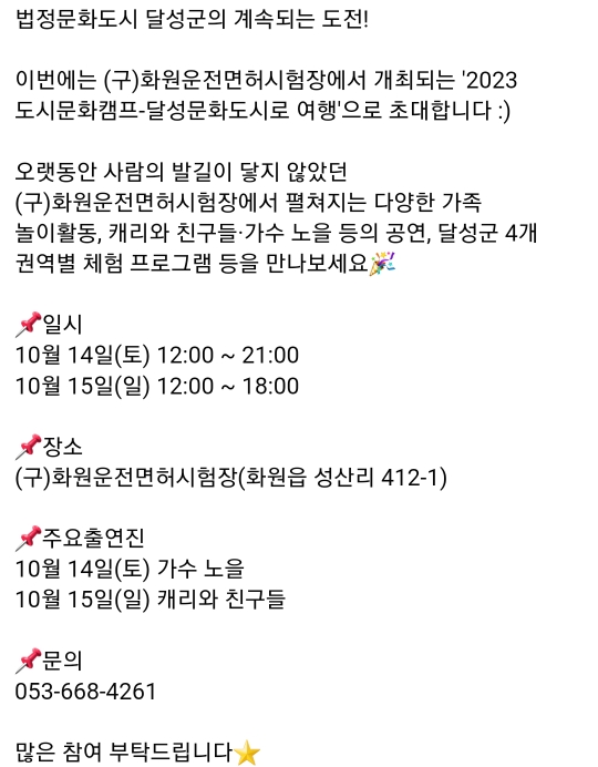 68. 대구 달성군 도시문화캠프(10.14~10.15)