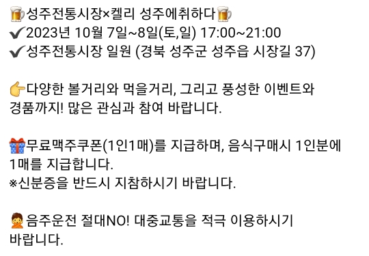 29.성주 전통시장x켈리 성주에 취하다-맥주축제(10.7~8)
