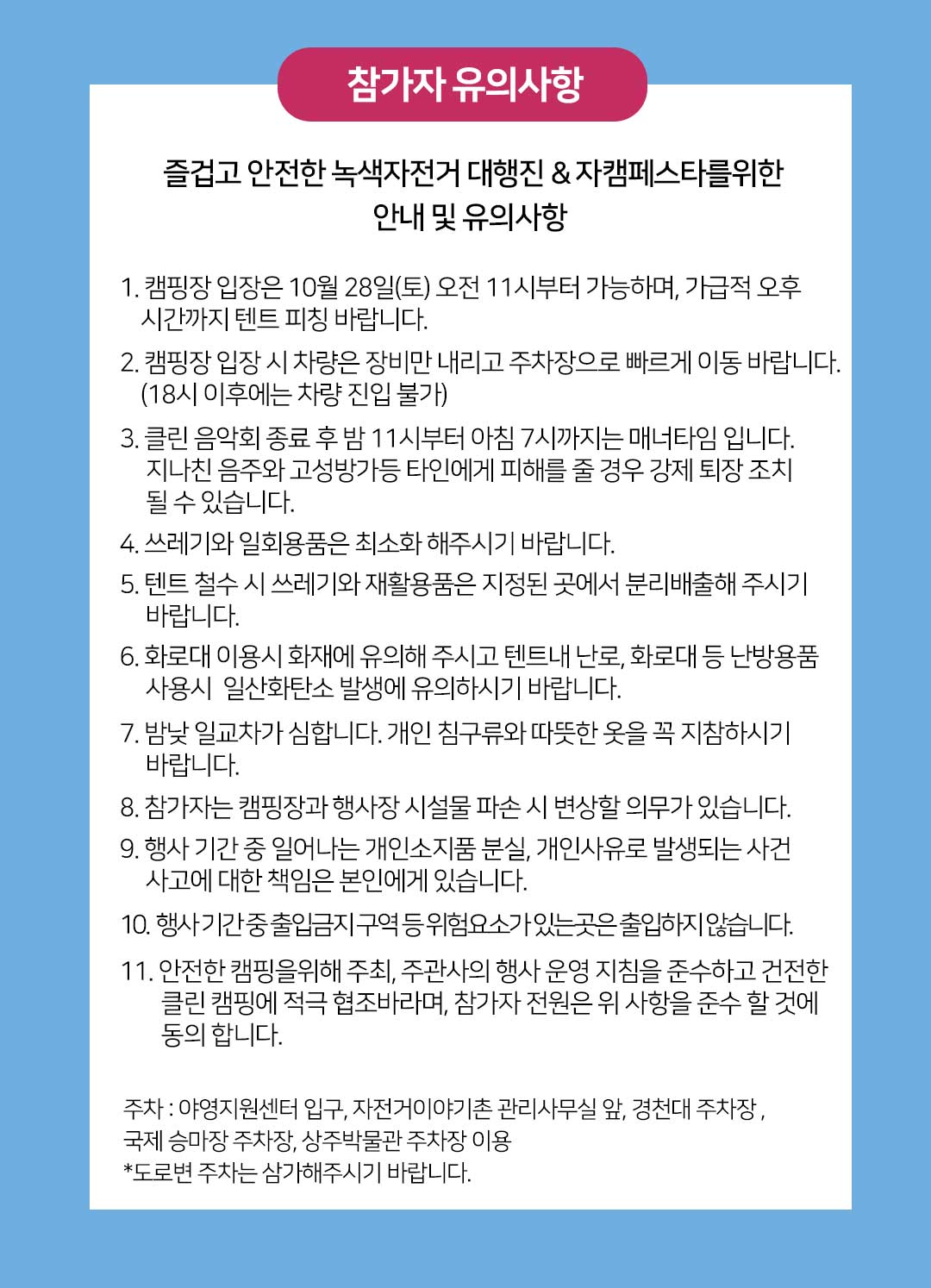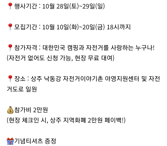 장소 : 경북 상주시 낙동강자전거이야기촌 야영지원센터