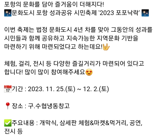 64. 포항 성과공유 시민축제 2023 포포낙락(11.25~12.2)