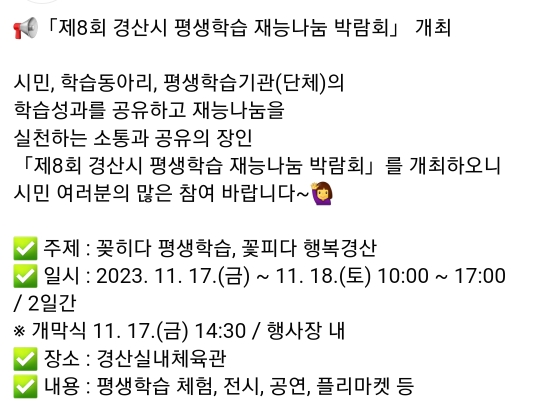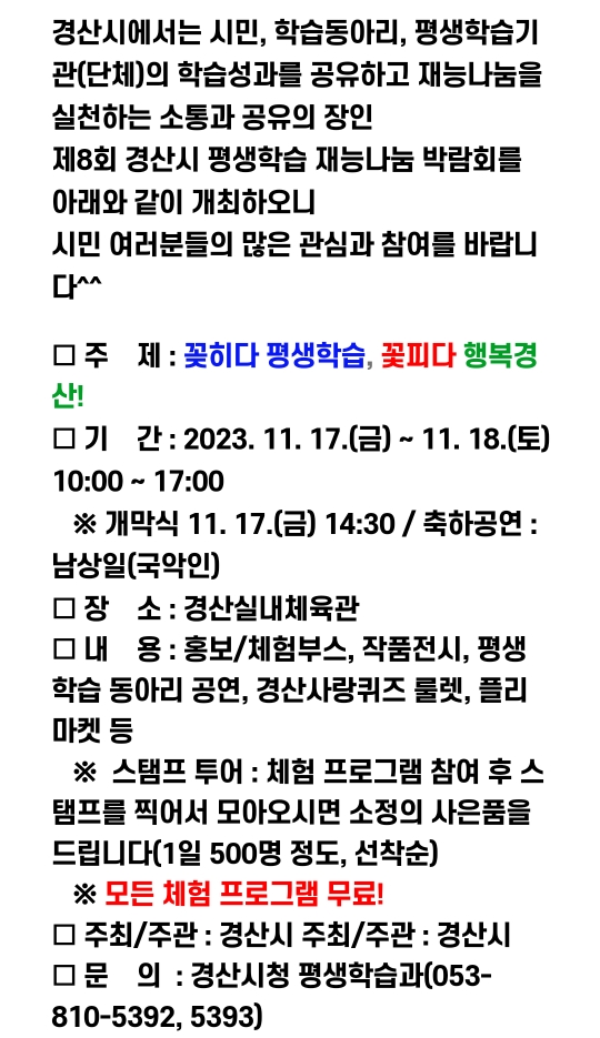 40. 경산 평생학습 재능나눔 박람회(11.17~11.18)