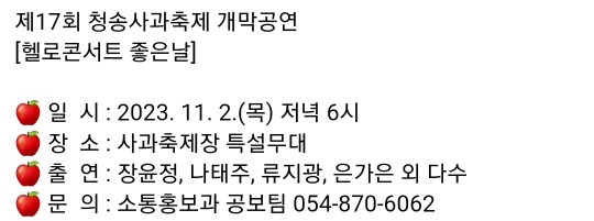 장소 : 경북 예천군 문화회관 / 선착순 무료 입장