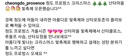 20. 청도 프로방스 산타마을 빛축제(11.4~24.2.17)유료