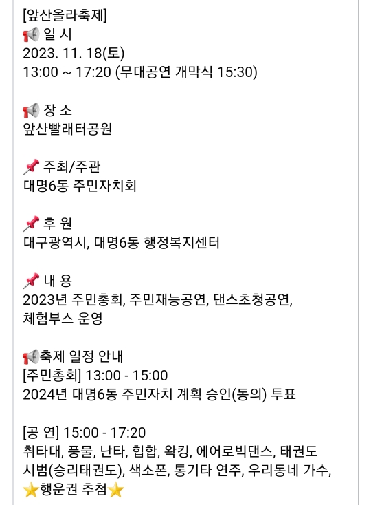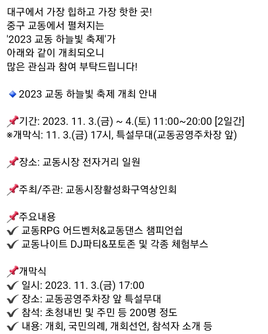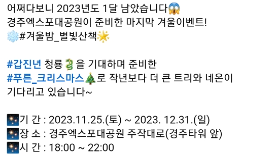 | 2023년 12월 대구, 경상북도 축제 (2) | 2023.11.24 |