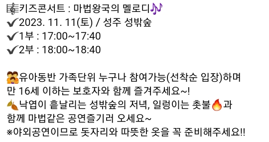 일시 : 2023.11.25(토) 오후 5시 / 선착순 /2014이후출생자
