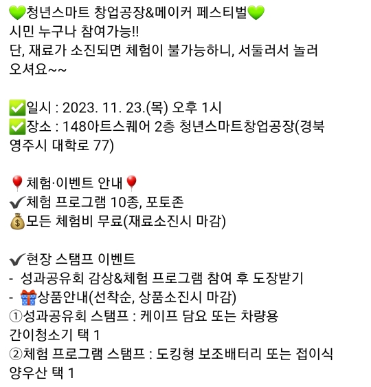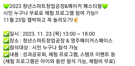 53. 영주 청년스마트 창업공장&메이커 페스티벌(11.23)