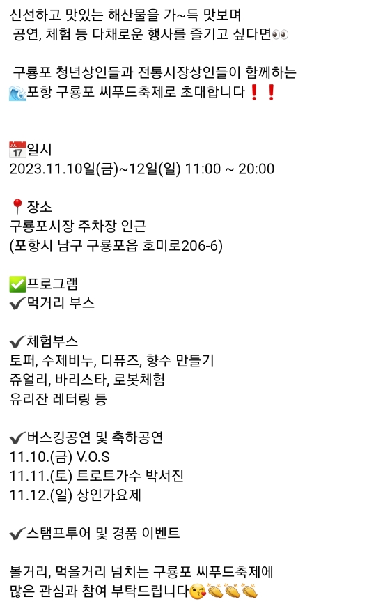 31. 포항 구룡포 씨푸드축제(11.10~11.12)
