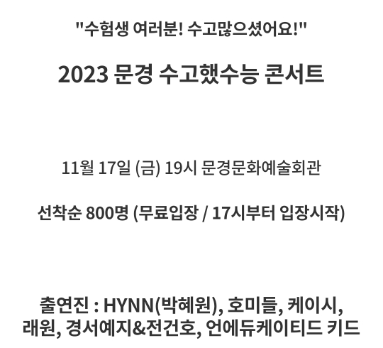 44. 문경 수고했수능 콘서트(11.17)당일17시~선착순