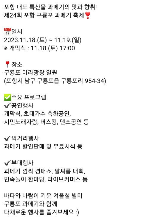 50. 포항 구룡포 과메기 축제(11.18~11.19)
