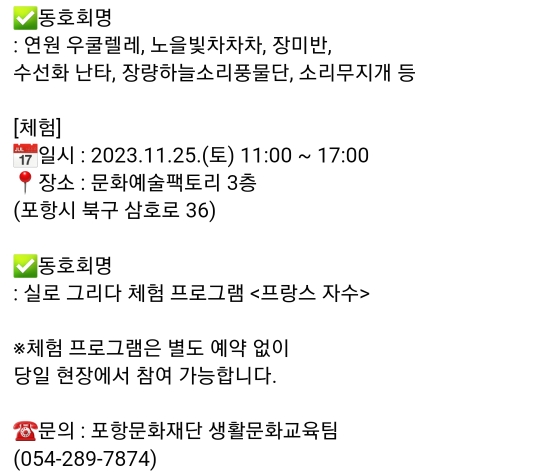일시 : 2023.11.25(토) 오후3시 /사전신청, 참가비있음
