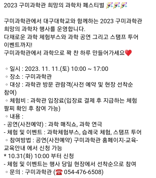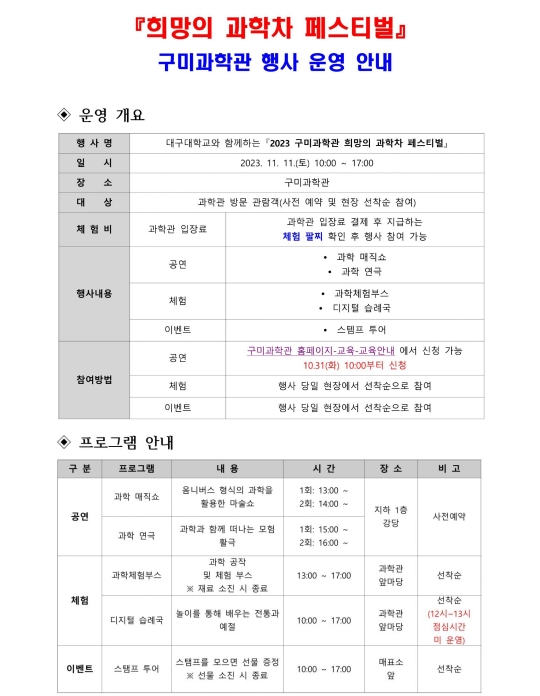 32. 구미 과학관 희망의 과학차 페스티벌(11.11)
