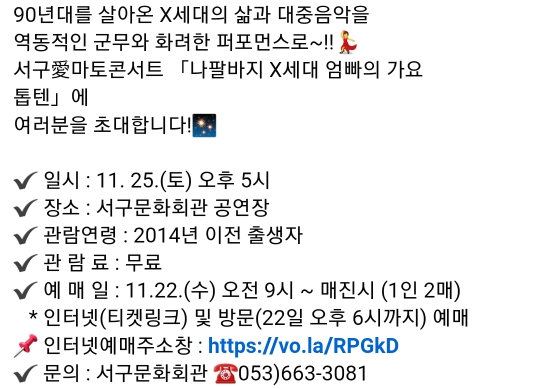 59. 대구 서구 X세대 엄빠의 가요 톱 텐(11.25)선착순