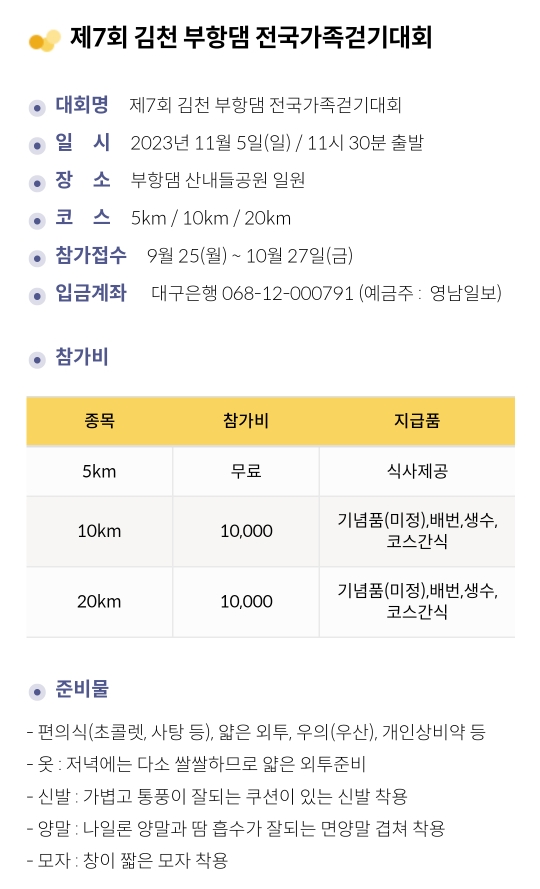 24. 김천 부항댐 전국가족걷기대회(11.5)참가비 유.무료