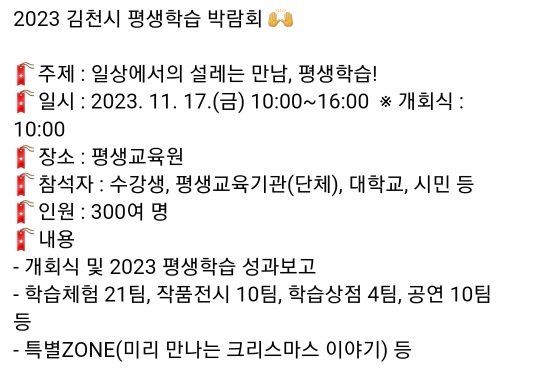43. 김천 평생학습 박람회(11.17)