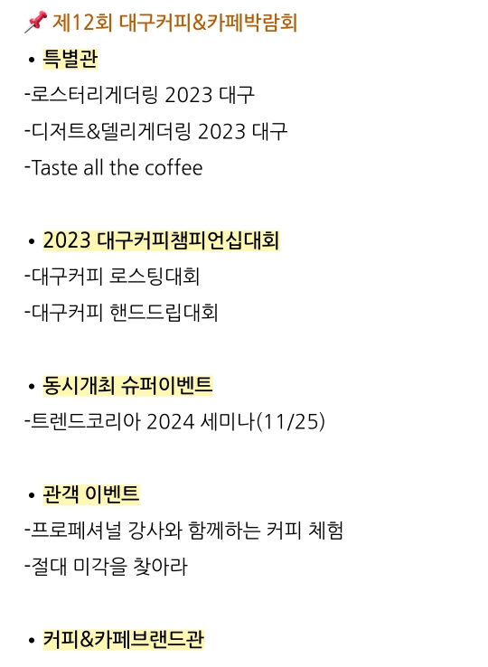 52. 대구 북구 커피&카페 박람회(11.23~11.25)유료