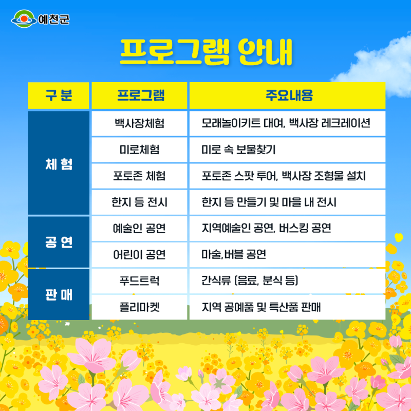축제행사를 정리해보았습니다.