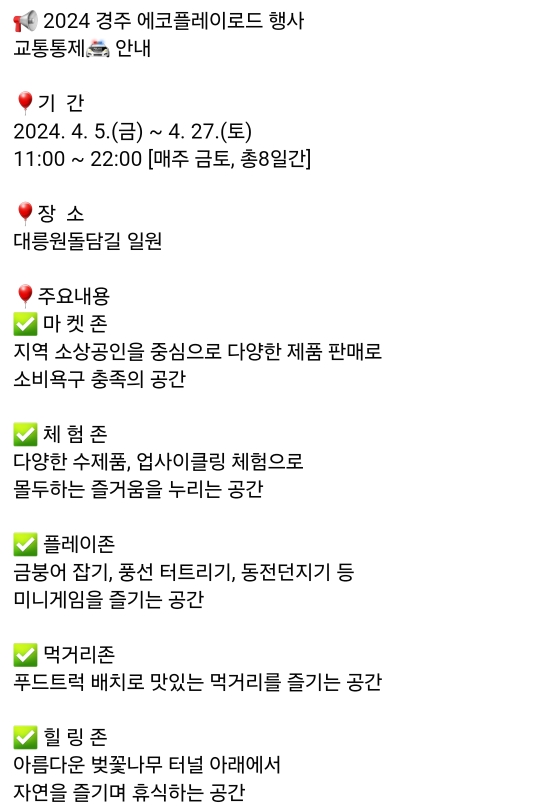 3.경주 에코플레이로드 행사(4.5~4.27)매주 금토