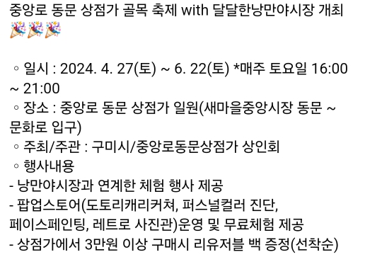 38.구미 중앙로동문상점 골목축제with야시장(4.27~6.22)