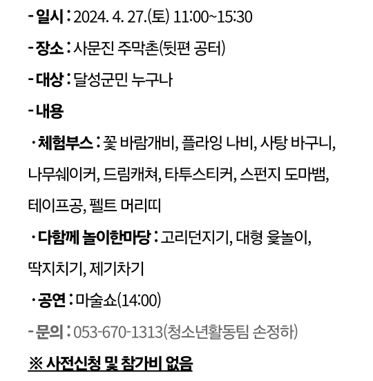 39.대구 달서구 두류문화한마당-한바탕 놀아보세!(4.27)