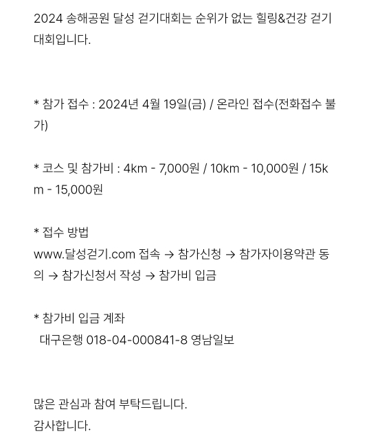 41.대구 달성군 달성걷기대회(4.27)사전접수,참가비