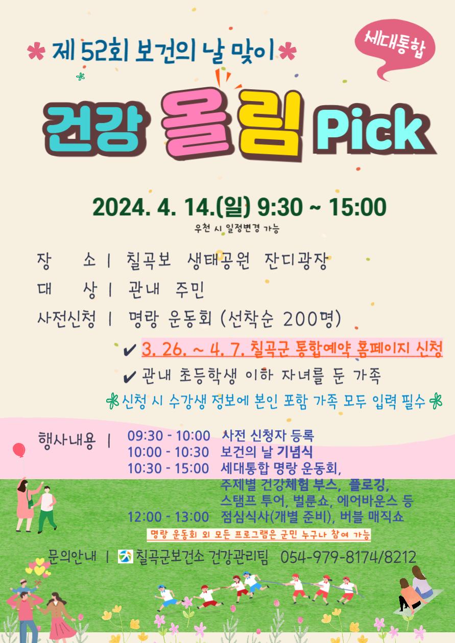 14.칠곡 건강 올림Pick(4.14)사전접수,관내주민대상