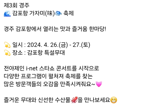 장소 : 경북 경주시 감포항 특설무대