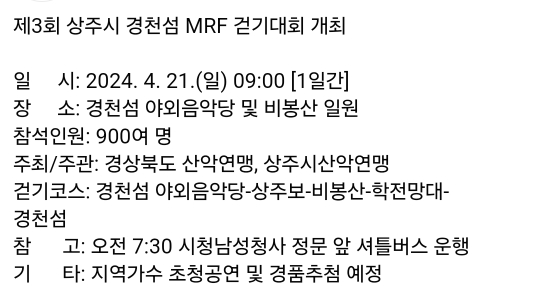 31.상주 경천섬 MRF걷기대회(4.21)사전접수,참가비