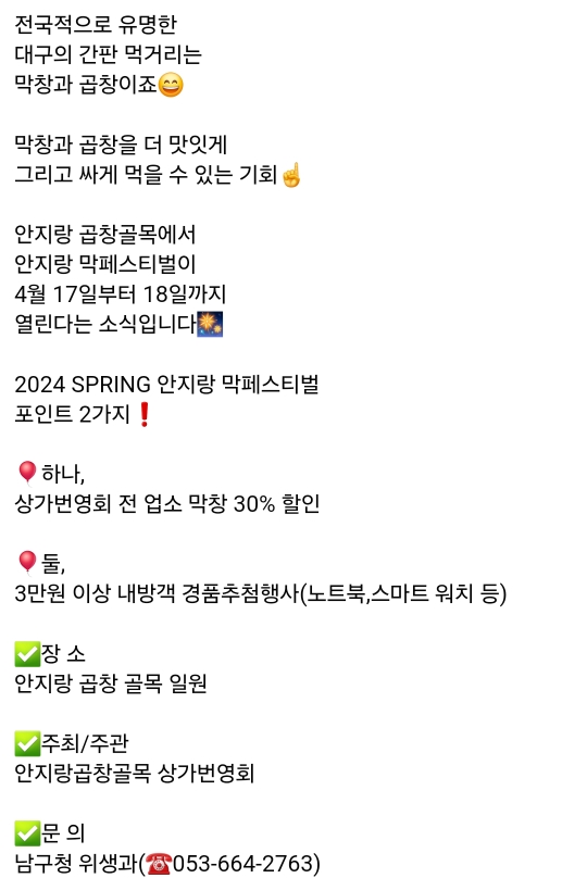 15.대구 남구 안지랑 막페스티벌(4.17~4.18)