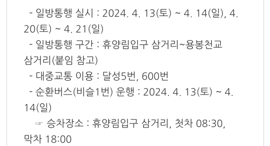 일시 : 2024.4.6(토) ~ 4.30(화)