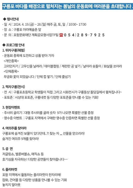17.포항 삼삼하게 놀자구룡 봄 운동회(4.19~28)매주 금토일
