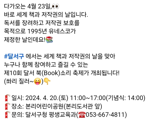 22.대구 달서구 달서 북(Book)소리 축제(4.20)