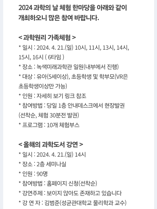 30.김천 녹색미래과학관 -과학의 날 체험 한마당(4.21)