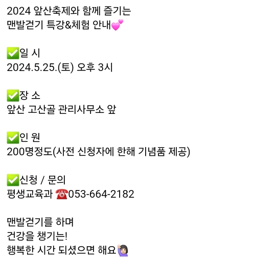 *앞산축제 -맨발걷기 특강&체험(5.25) 오후3시