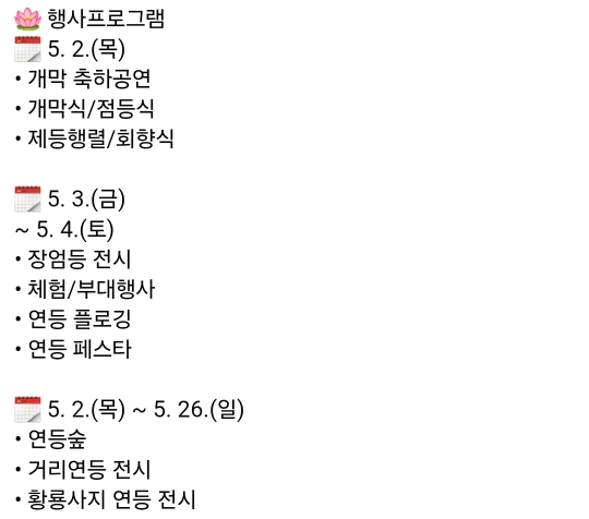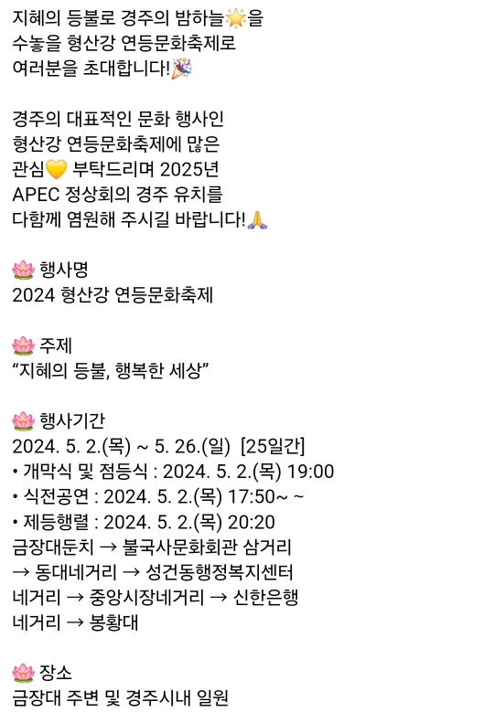 1.경주 형산강 연등문화축제(5.2~5.26)