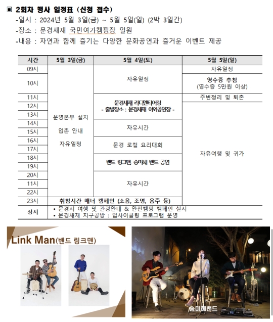 3.문경 힐링 캠핑 페스티벌(5.3~5.5)사전접수후 추첨, 유료