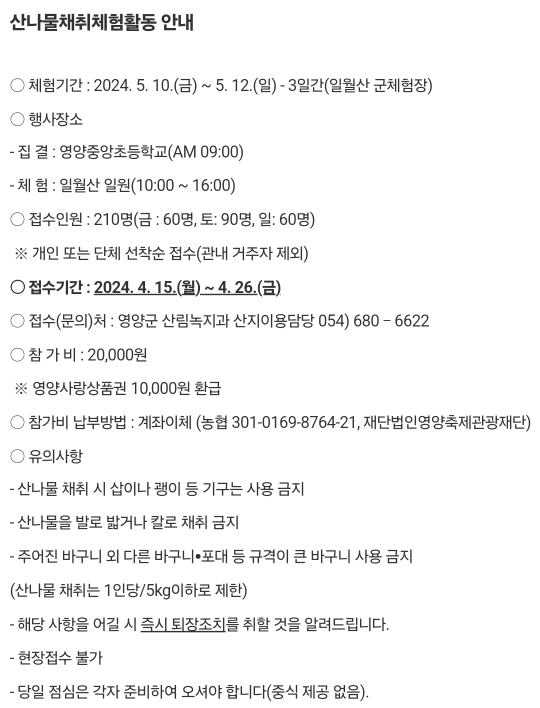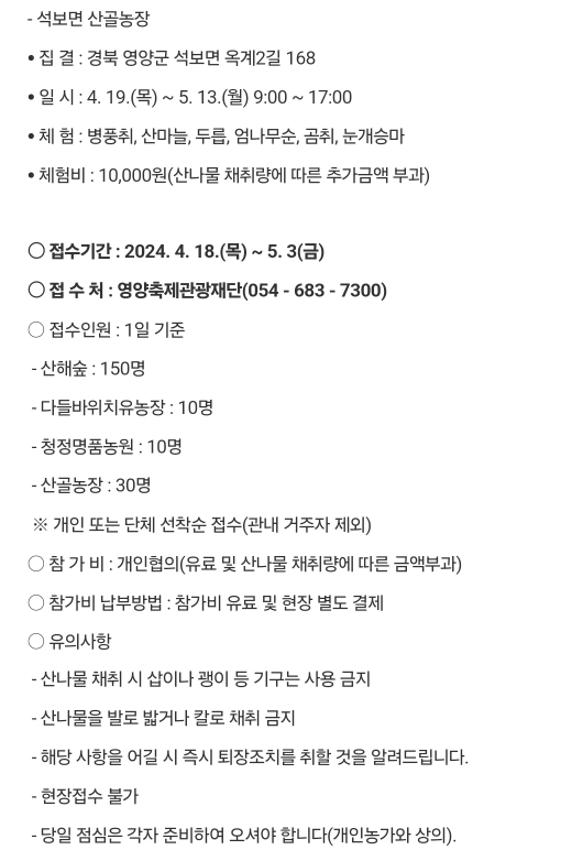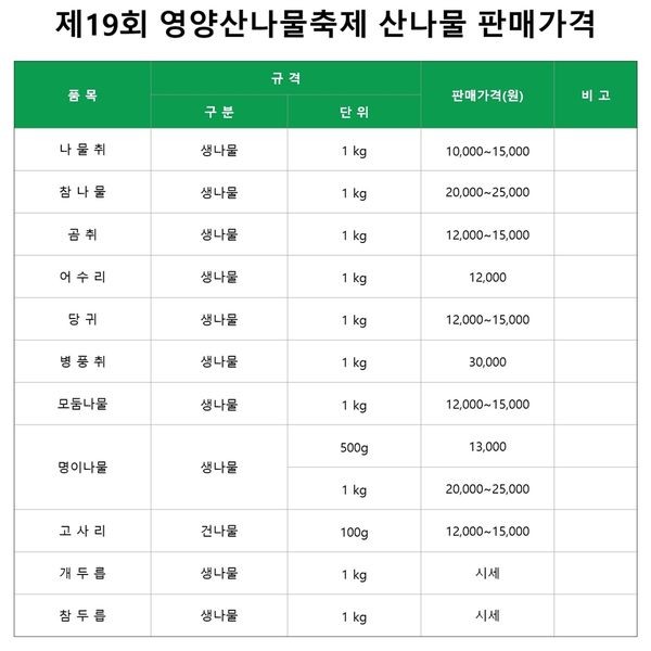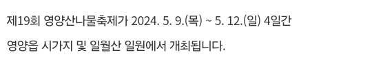 17.영양 산나물축제(5.9~5.12)사전접수,유료