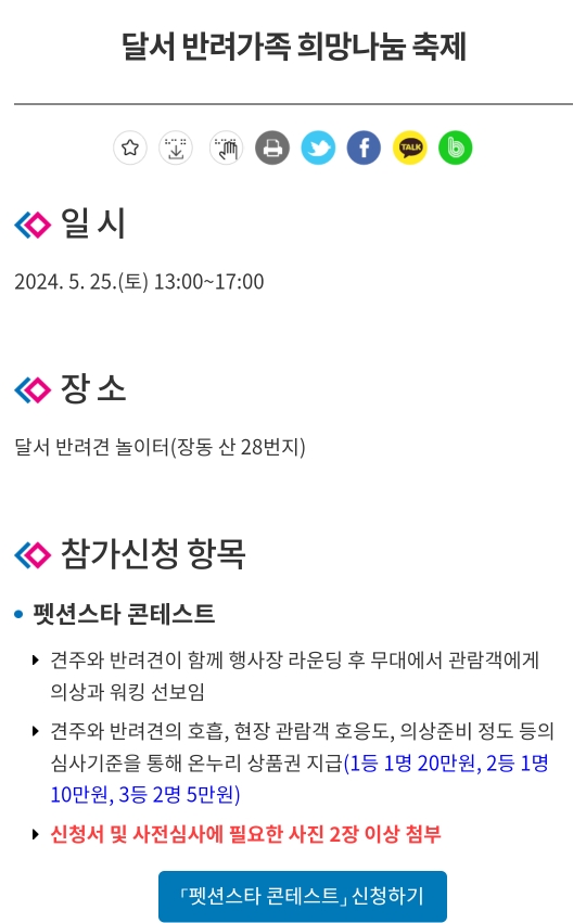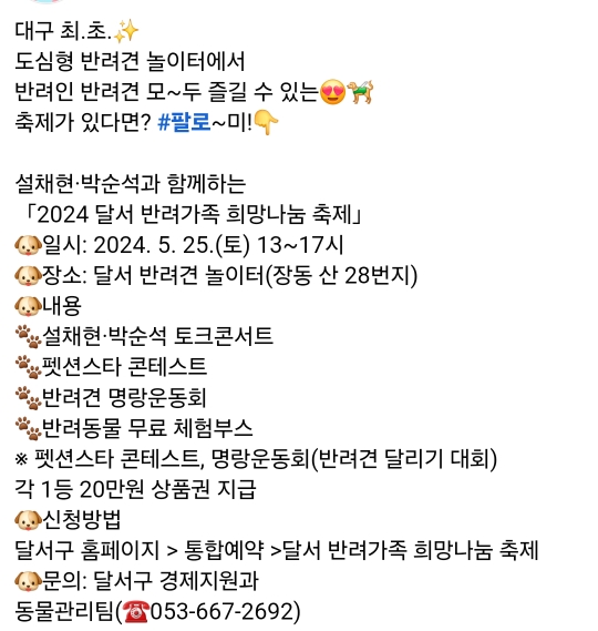 (반려견 명랑운동회 참가시, 달서구 사이트에서 신청필수)
