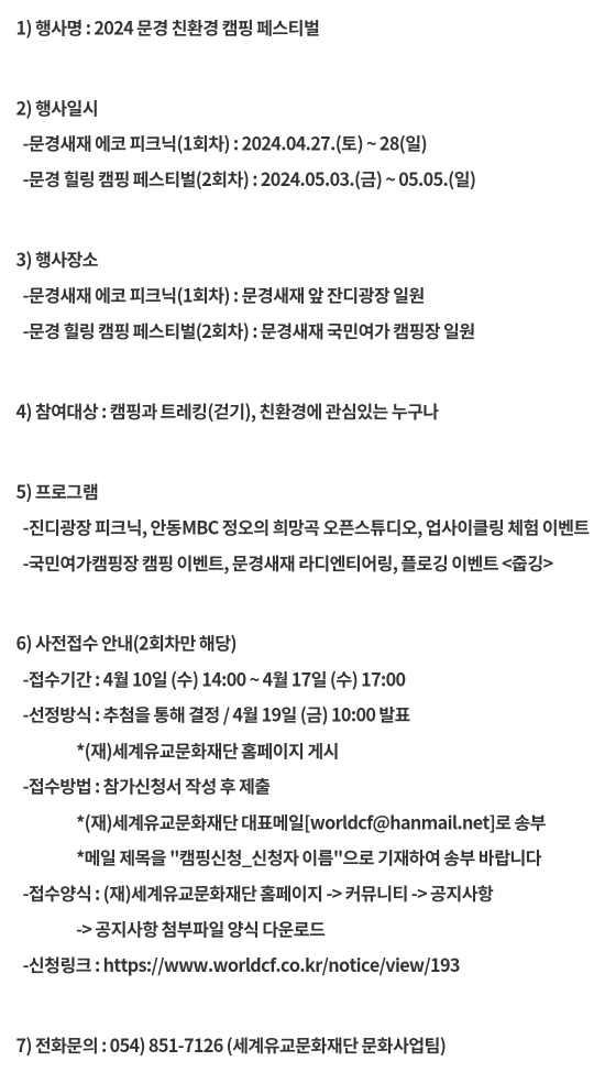 일시 : 2024.5.3(금)~5.5(일) 사전접수(4.10~17)후 추첨