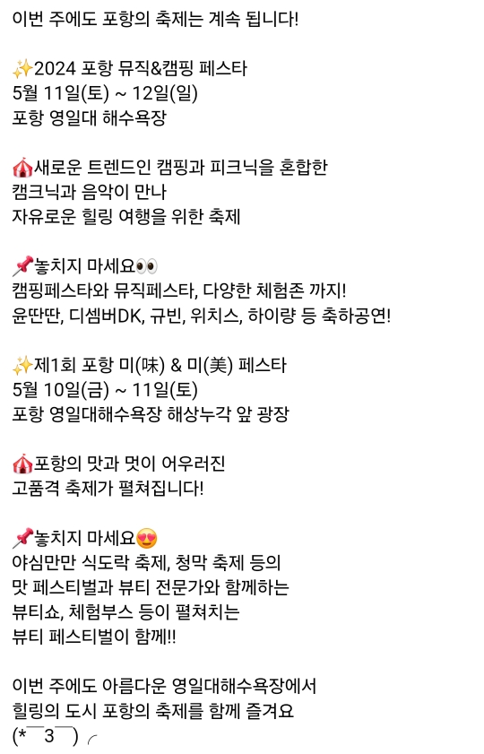 37.포항 뮤직&캠핑 페스타(5.11~5.12)