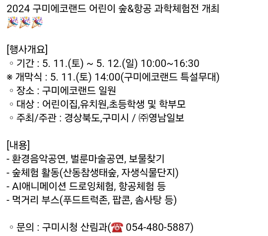 26.구미 에코랜드 어린이 숲&항공 과학체험전(5.11~12)