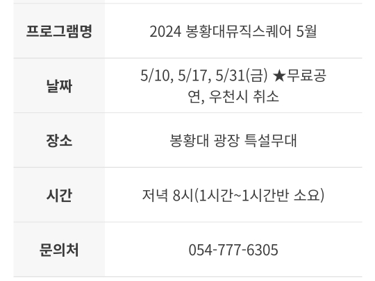 18.경주 봉황대 뮤직스퀘어(5.10/5.17/5.30)
