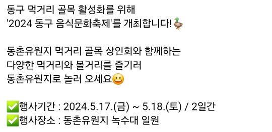 45.대구 동구 음식축제 -힐링리버파크'오리날다'(5.17~18)