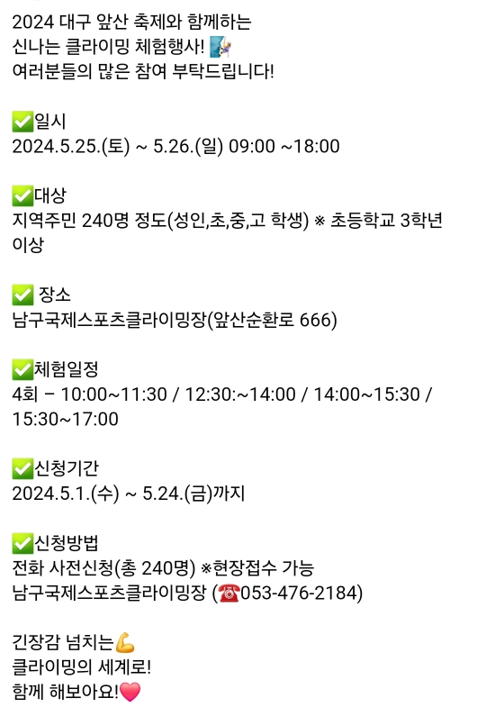 *앞산축제 -신나는 클라이밍 체험(5.25~5.26)사전,현장
