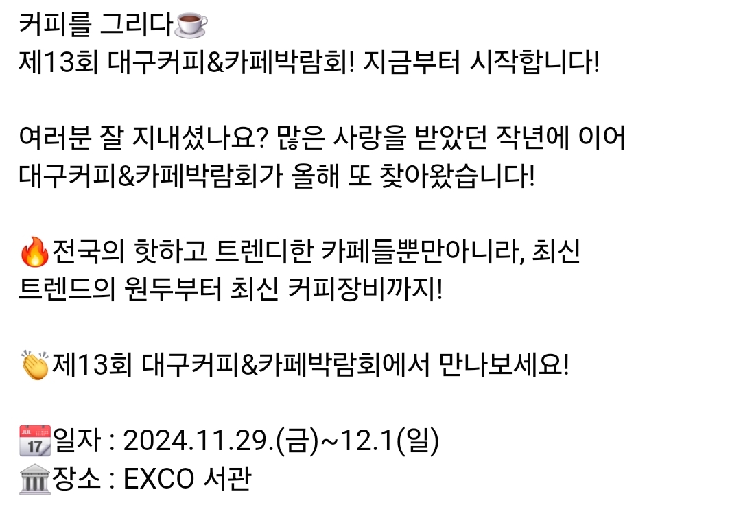 68.대구 음식박람회 /커피&카페박람회(11.29~12.1)유료